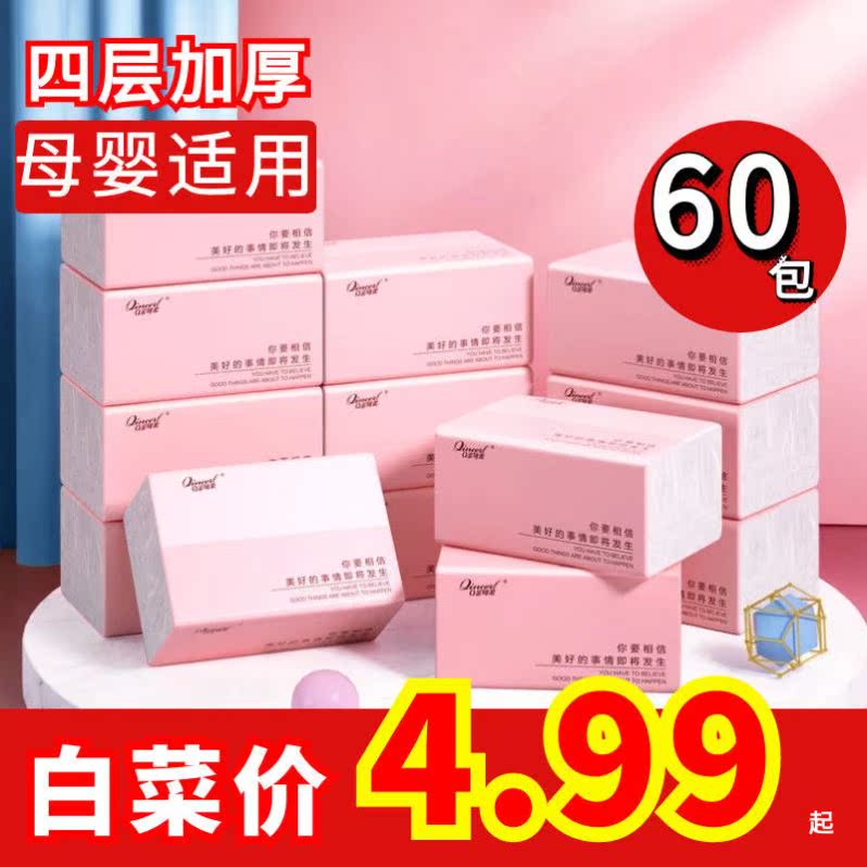 Q pro flexo removable toilet paper 60 packs of giant mass extraction style toilet paper towels toilet paper whole box home car napkins 4-60 packs
