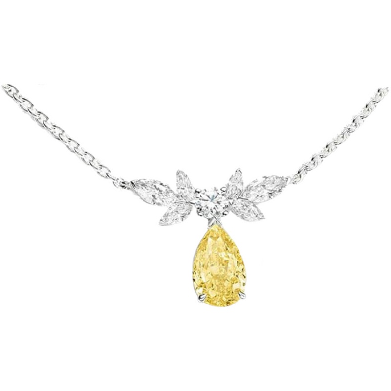 18K Platinum Necklace Angel Wings Pendant D Color Mosanstone Neck Necklace Sweet Water Drop Women Platinum Collarbone Chain