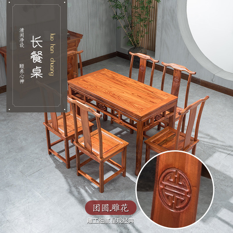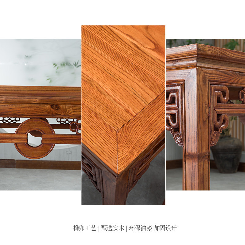 Eight Fairy Table Full Solid Wood New Chinese Style Long Dining Table And Chairs Combination Small Square Table Home Dining Room Hotel Hotel Antique Elm Wood