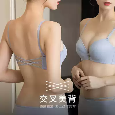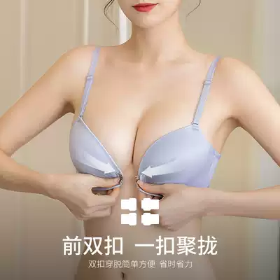 Double front buckle bra thickened women without steel ring gathered small chest without marks on sexy deep V beautiful back breathable underwear summer
