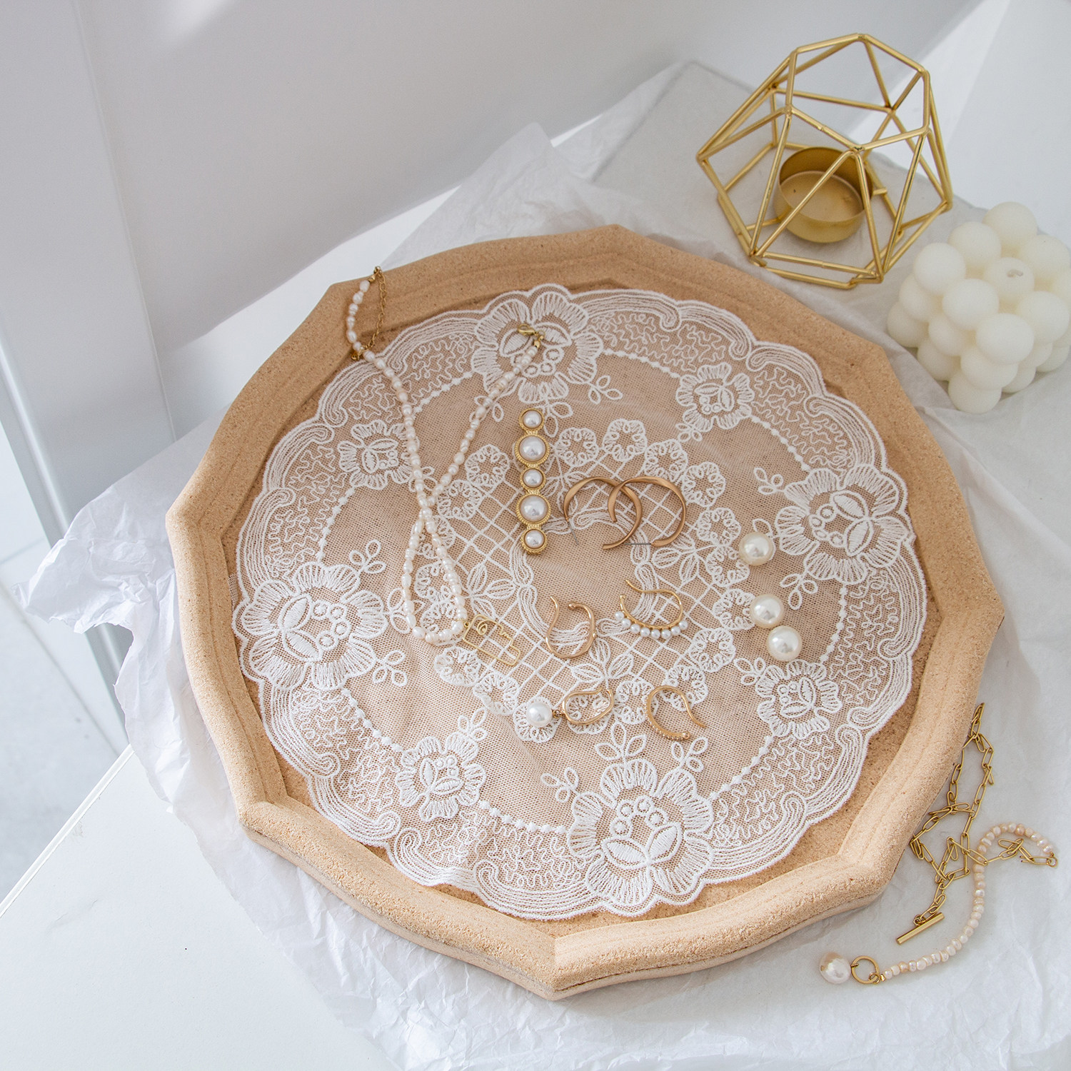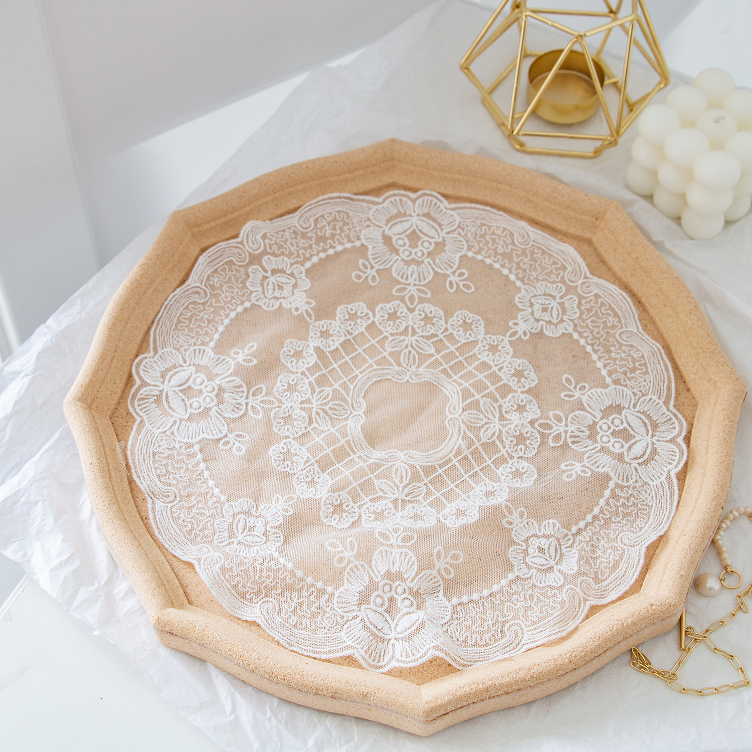 ins round method retro embroidered flower lace cushion jewelry ornament photo-prop photo background cloth decoration