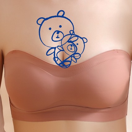 Summer invisible shoulder straps latex underwear women's strapless no steel ring bra close-up breasts gathered non-slip shockproof non-running cup