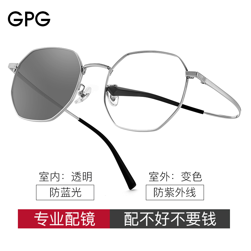 Pure titanium ultra-light myopia glasses male retro eye frame frame female with degree color discolored anti-blue radiation