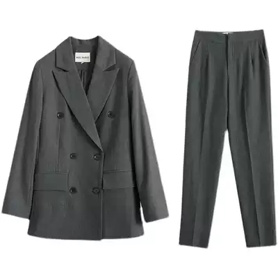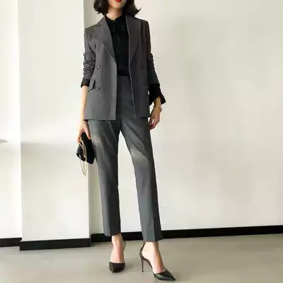 Suit suit women Spring and Autumn professional fashion temperament double-breasted formal gray senior sense 2021 New Suit