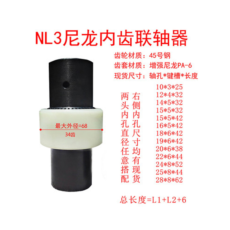 NL nylon inner gear coupling motor oil pump shaft connection high torque 45 steel gear nylon ring rubber sleeve