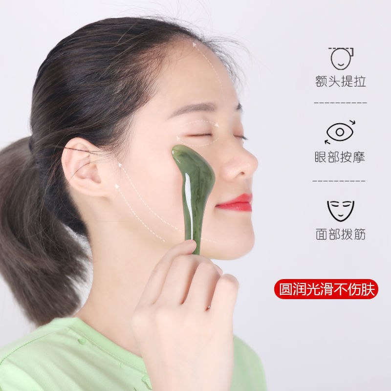 Crystal scraping board V-face artifact (you can use rouge powder for sensitive muscles Heart-shaped face-lifting scraping board (detoxification and slimming face) Emerald green jade-colored tendon-pulling stick (increase facial elasticity Emerald green jade-colored tendon-pulling stick cat ear hair bundle