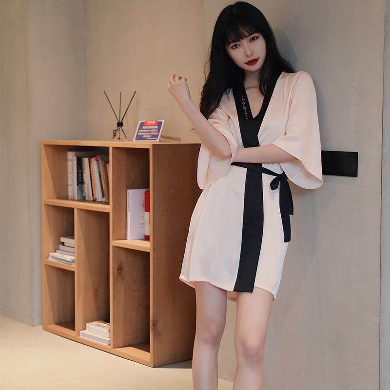 Sexy pajamas women's summer ice silk long-sleeved suspenders pure desire nightdress high-quality large size wedding autumn and winter bathrobe nightgown