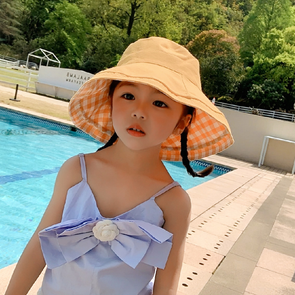 Japanese gp fisherman hat children's hat summer Western style female baby sunscreen sun hat plaid basin hat all-match