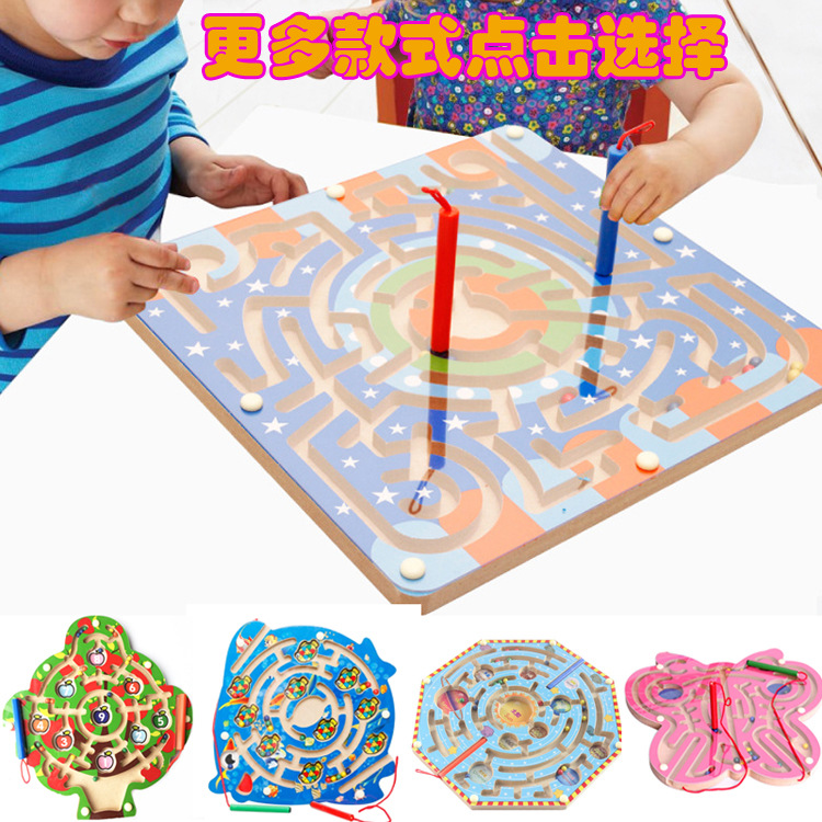 Magnetic pen maze magnetic toy walking beads puzzle brain thinking concentration training early education game 2-5 years old