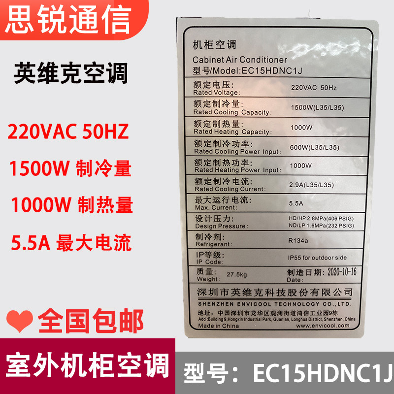 5G outdoor communication cabinet air conditioner Invic EC15HDNC1 outdoor integrated base station constant temperature refrigeration heating