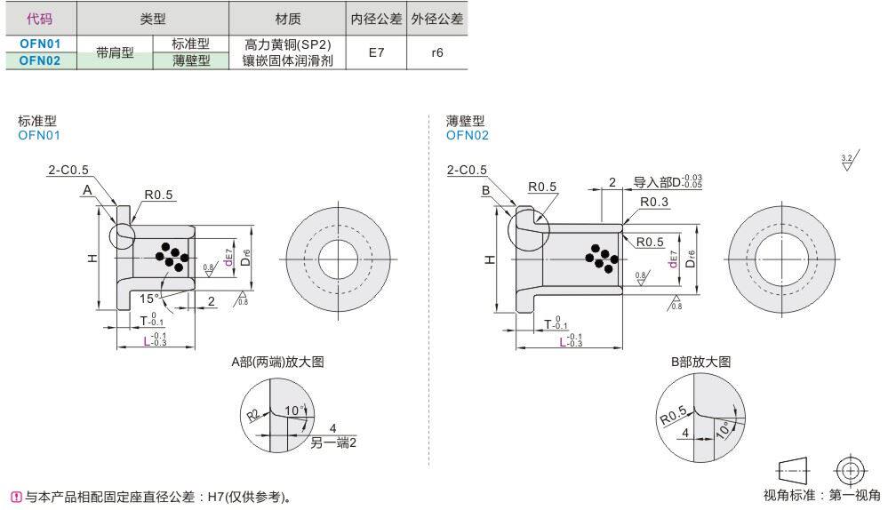 Oil-free bush copper alloy with shoulder type copper sleeve OFN02-d25 d30-L20 d30-L20 L25 L40 L30 L50 L50 L50