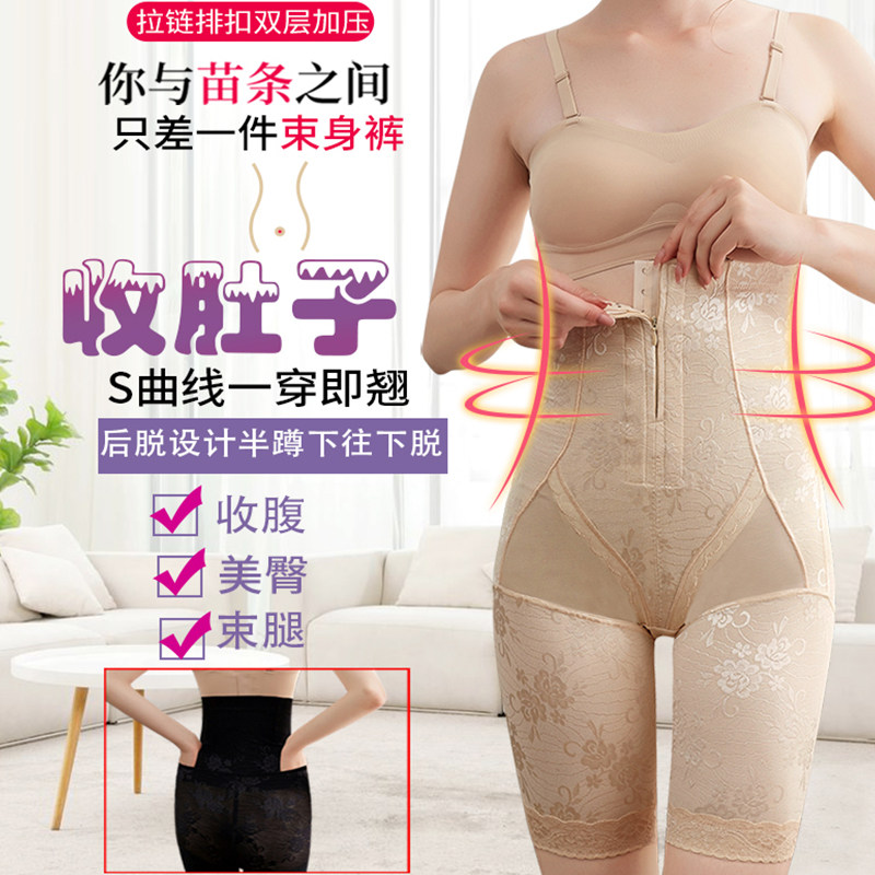 Fat MM underwear female summer thin flat hip beam waist plastic pants after birth to small belly zipper type