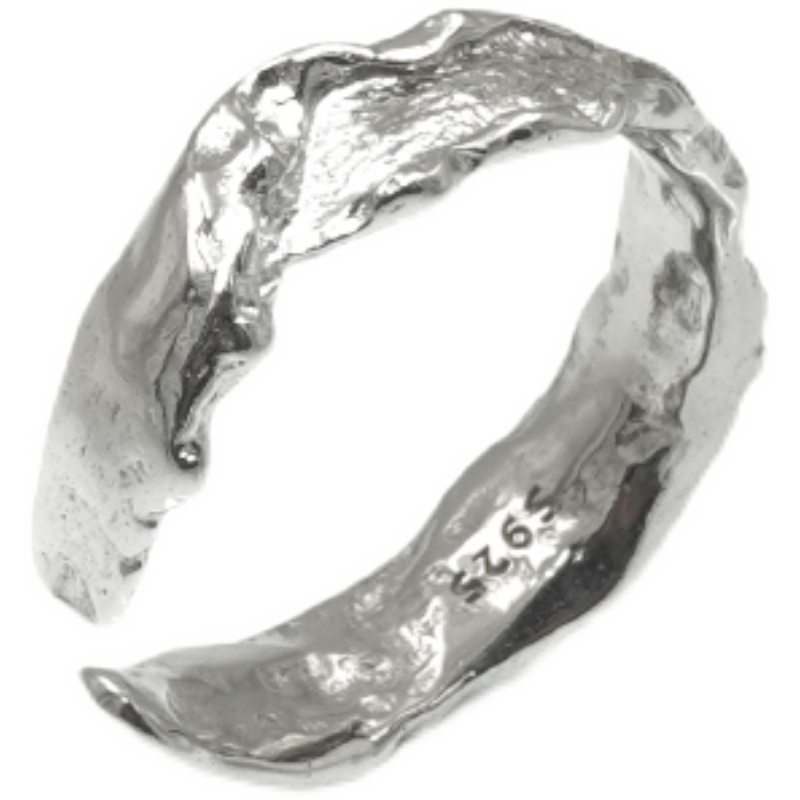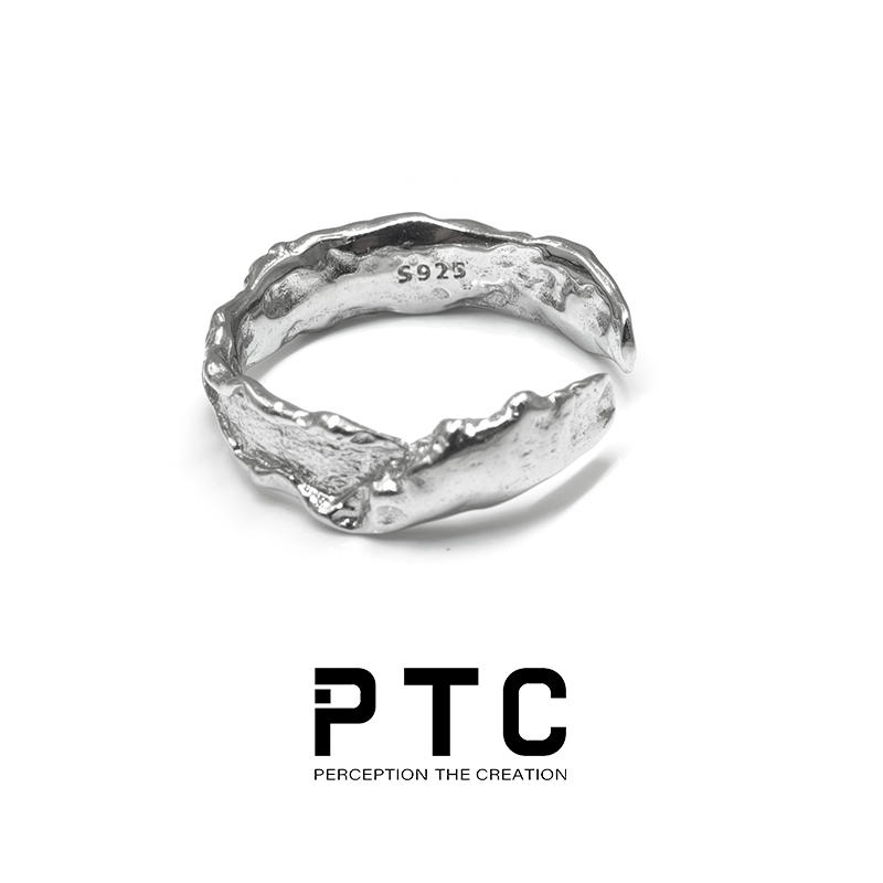 PTC niche irregular personality design burning texture S925 hole silver male and female opening adjustable ring