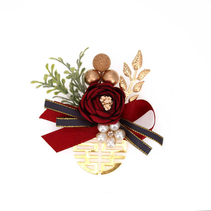 Original wine red champagne powder flower Sensen leaves a brooch groom married bridesmaid opening ceremony