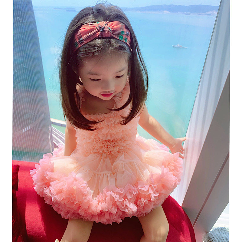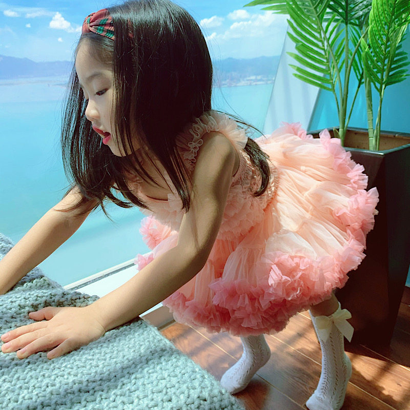 NANI girl summer hanging dress pink tutu cake skirt princess birthday dress mesh gauze pork dress