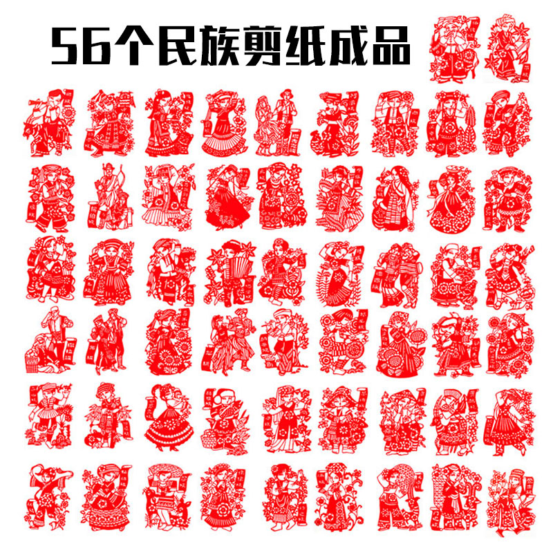 Chinese wind handmade paper-cut finished product 56 nationalities united window stickers hollow decorative glass stickers for foreigners
