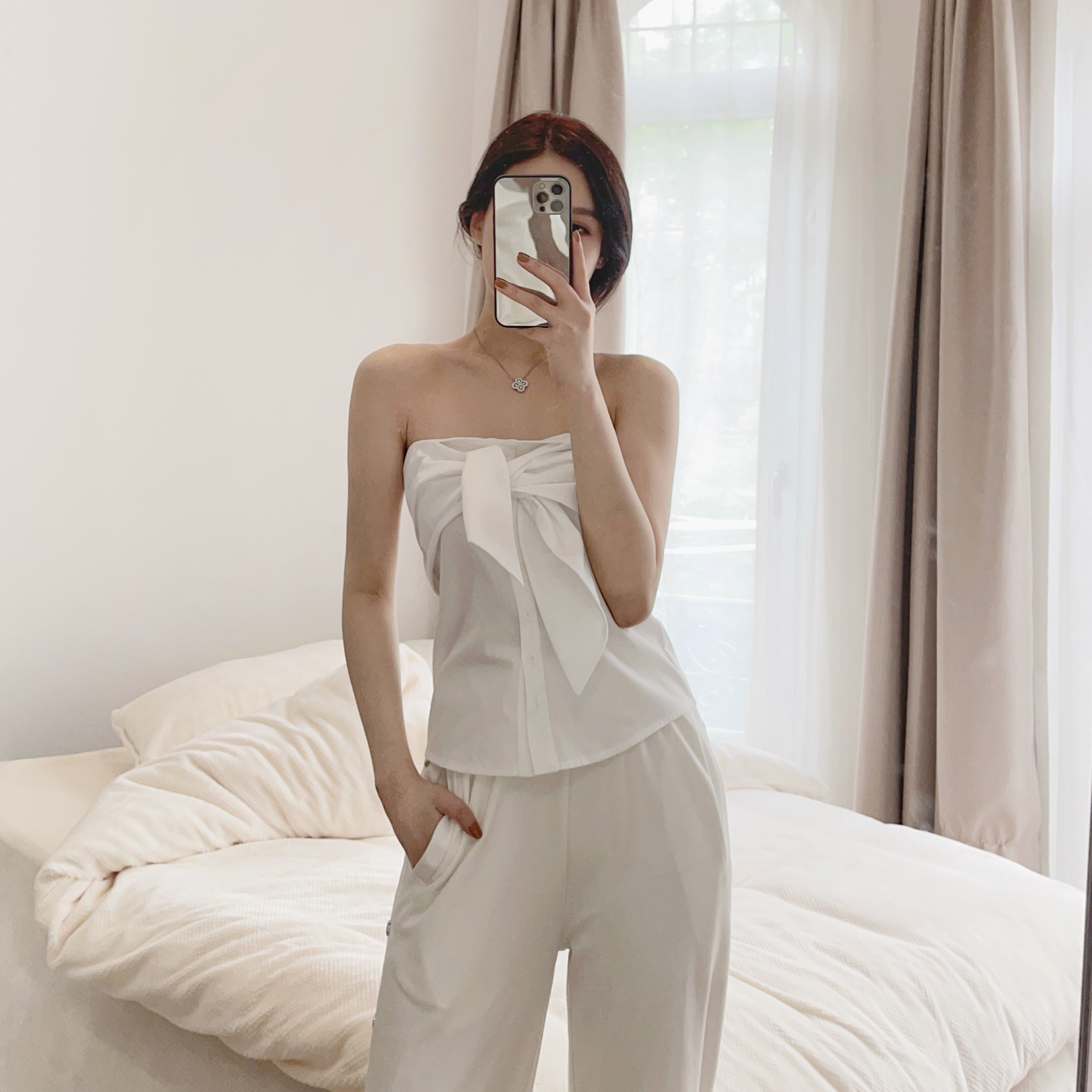 nicky bowknot tube top women's summer outerwear white short all-match self-cultivation hot girl strapless one-shoulder