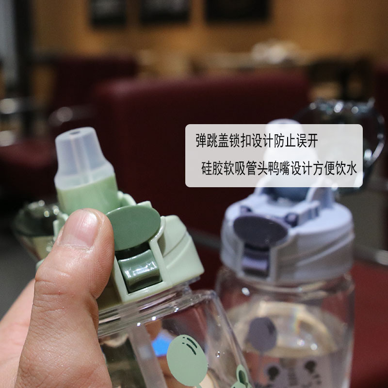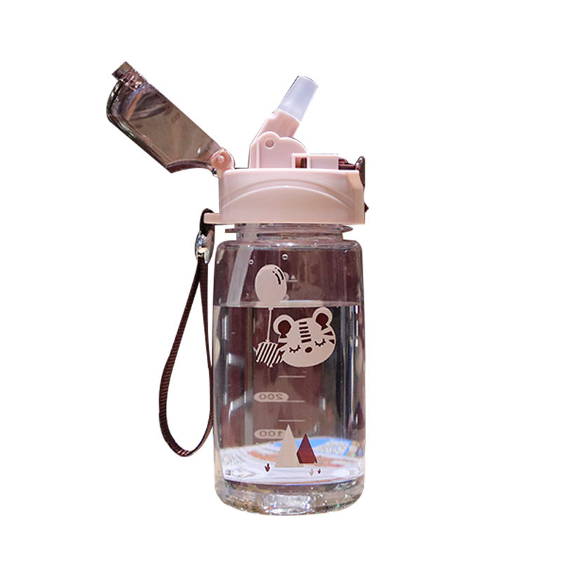 New cartoon bouncing cover plastic straw cup with rope scale children's water bottle heat-resistant drop-proof water-proof cup