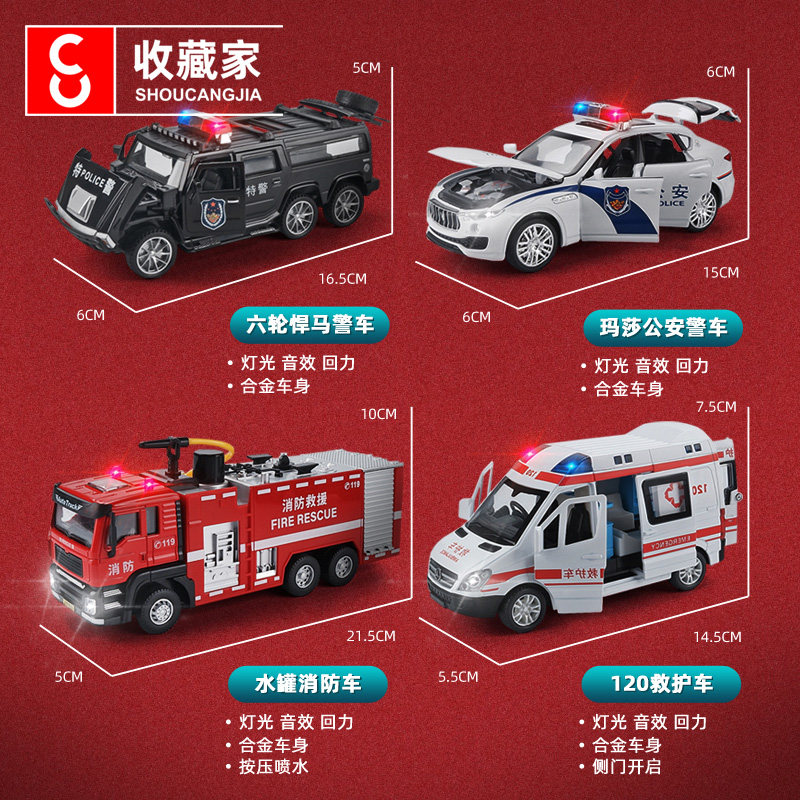 Alloy car toy simulation police car children toy car back to boy boy gift fire truck model