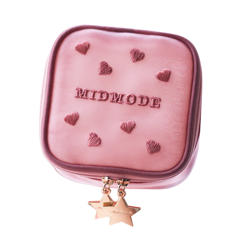MIDMODE Half busy Makeup Bag Small Portable Mini INS Mesh Yarn Loving Embroidered Carry-on-Fire Contained Lipstick