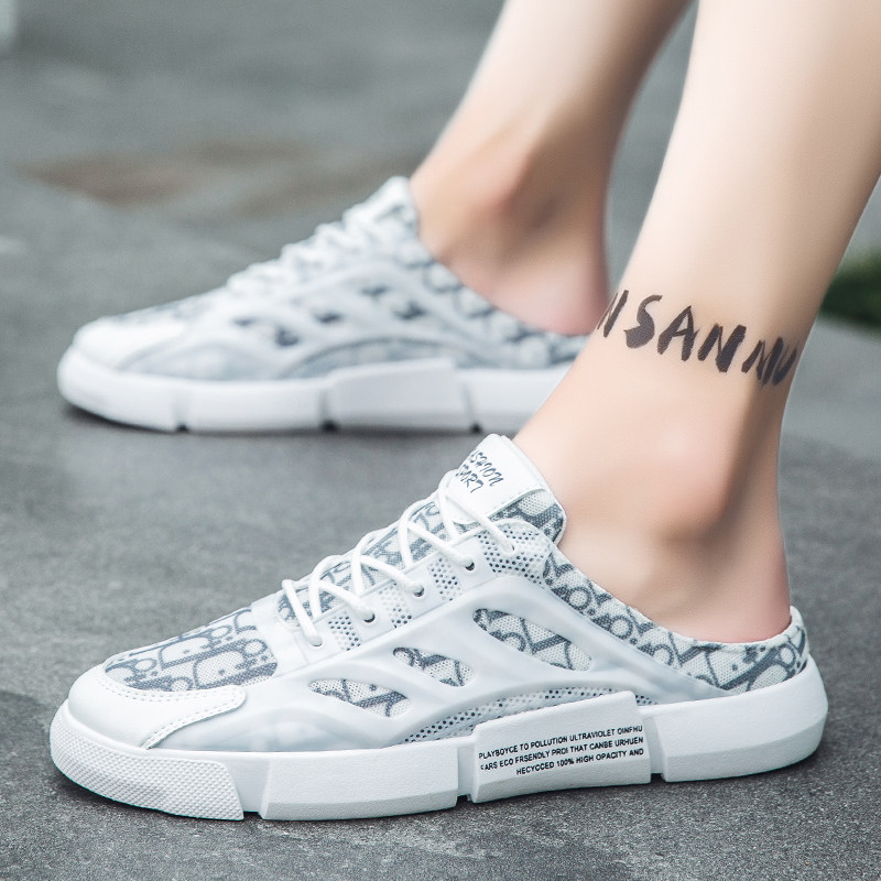 Slippers male outwear male shoes Summer breathable slob One foot pedal No heel half slipper outdoor Baotou sandals hollowed out