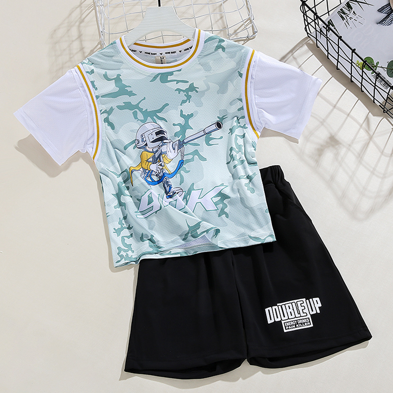 Children's fast dry dress boy suit summer dress 2023 new childhood short sleeved balloon basketball suit two pieces