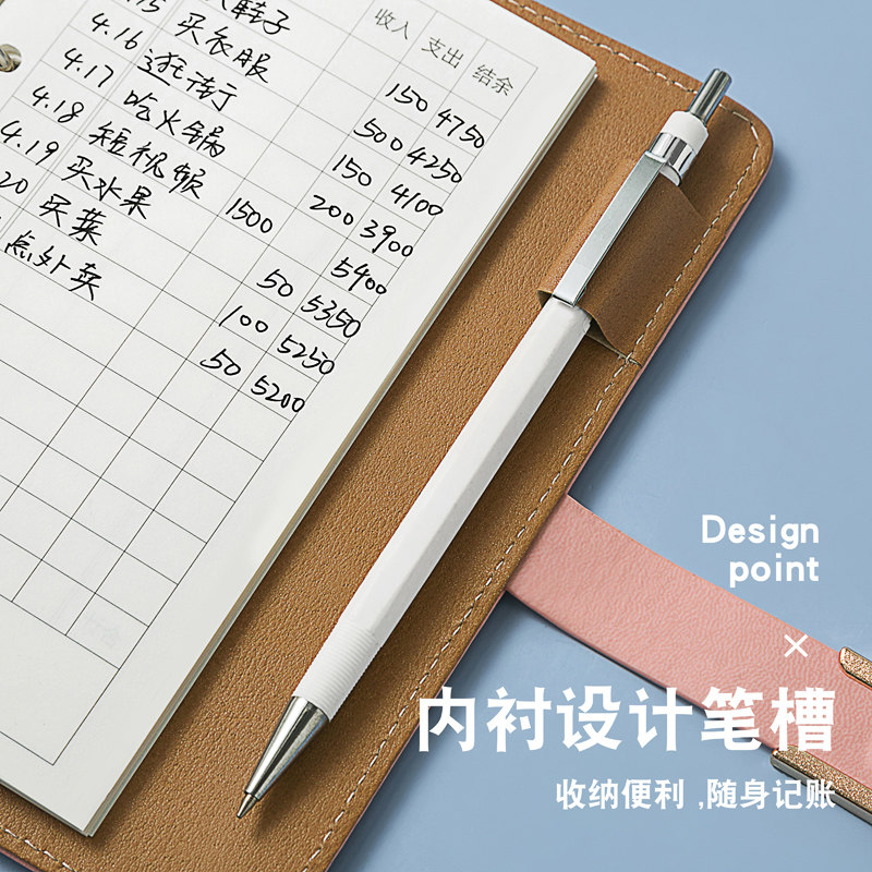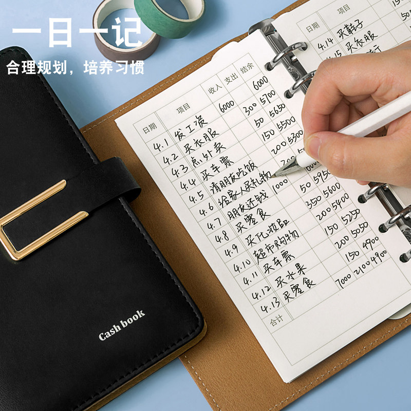 Three-year second-class leather booklet loose-leaf can be used for the core hand account detailed account family finance notebook daily pocket money expense record book cortex student daily expenses expense book の