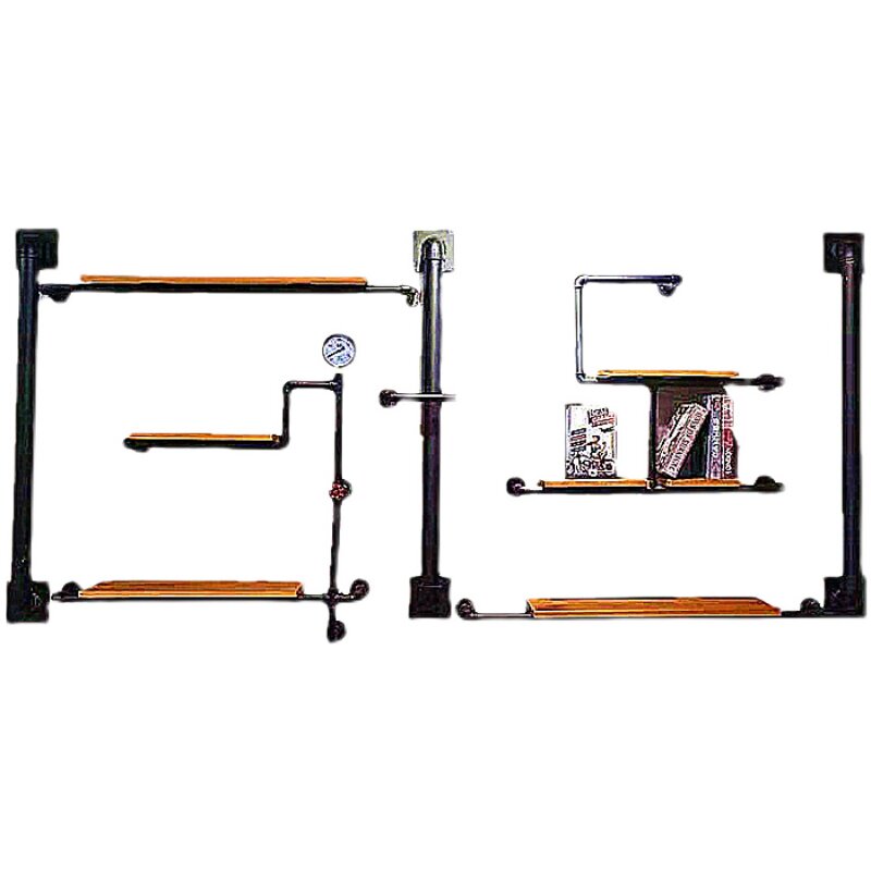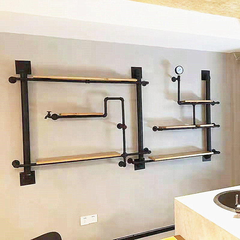Iron water pipe wall rack wine rack creative wall decoration retro bookshelf industrial wind partition wall hanging shelf