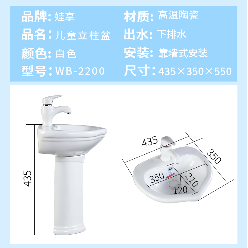 Baby Enjoy WB-2200 Children's Upright Washbasin Kindergarten Floor Style Washbasin small number European style ceramic table basin