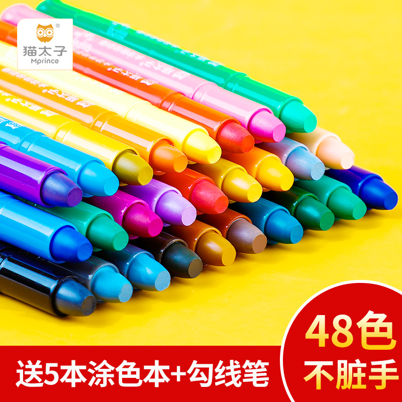 Cat Prince Children's Crayon Oil Painting Stick 24 Color 36 Safe and Non-toxic Washable Hand Brush 48 Rotating Colorful Stick 12 Primary School Kindergarten Set Baby Water-soluble Color Pen