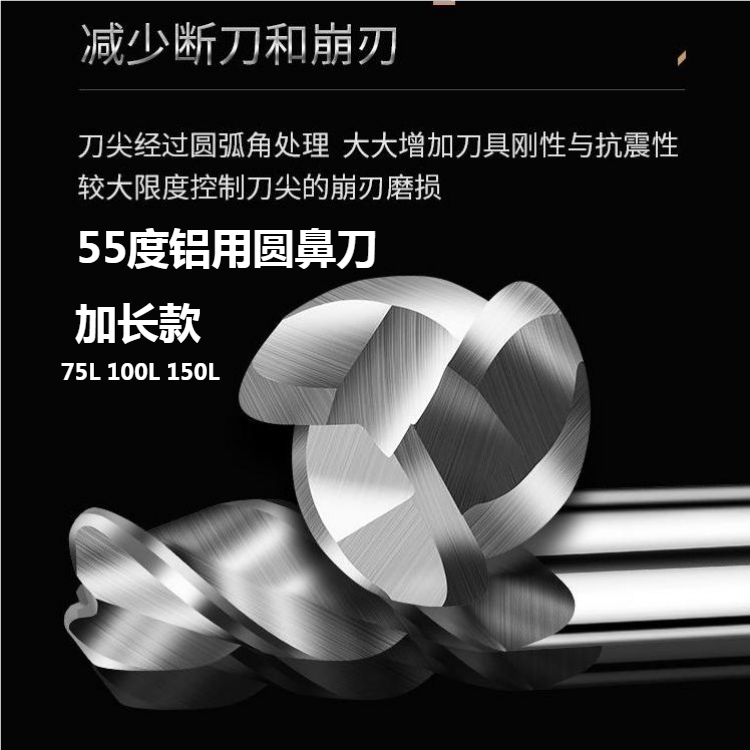 Aluminum round nose knife 55 degrees tungsten steel 3 blade round nose milling cutter carbide lengthened R angle 12r2 16r2 can be customized