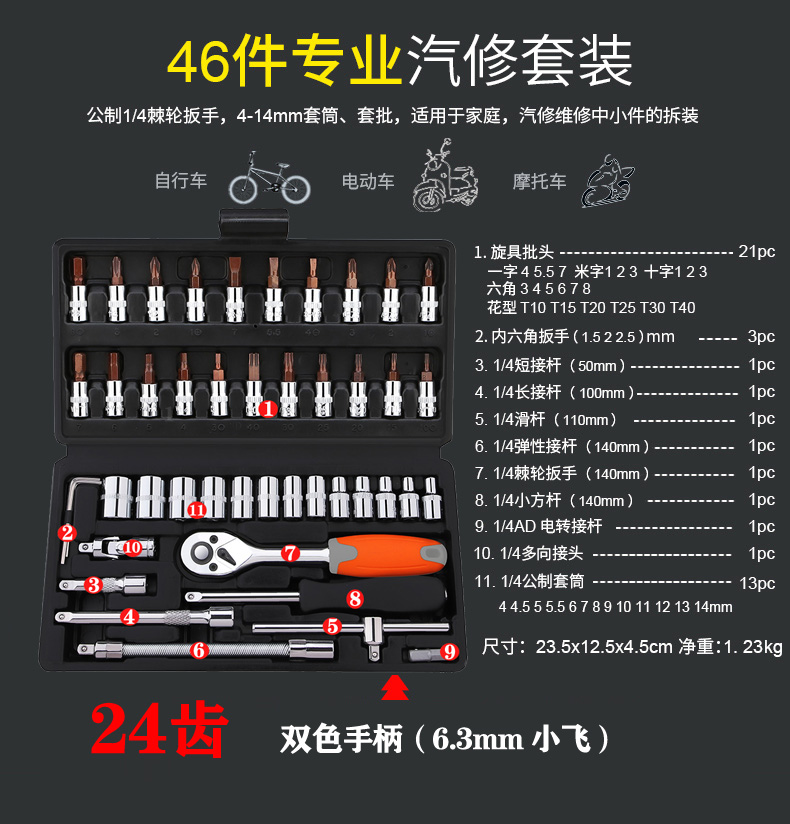 External hexagon quick ratchet wrench sleeve set tool suit universal hardware steam repair and maintenance tool box