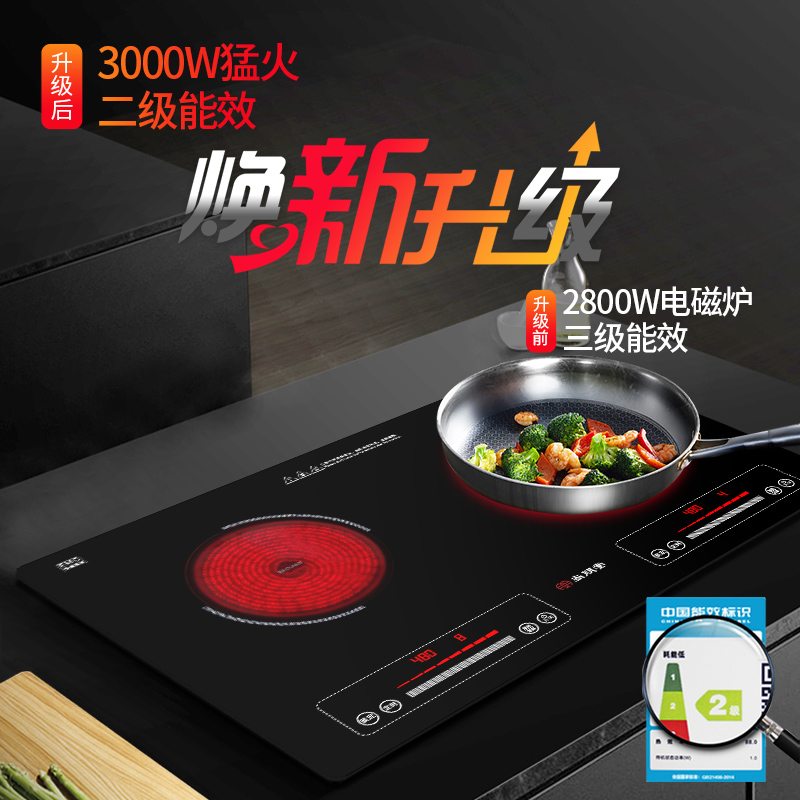 Shangpengtang black crystal furnace home embedded German imported Schott panel one electric one pottery half bridge double head induction cooker