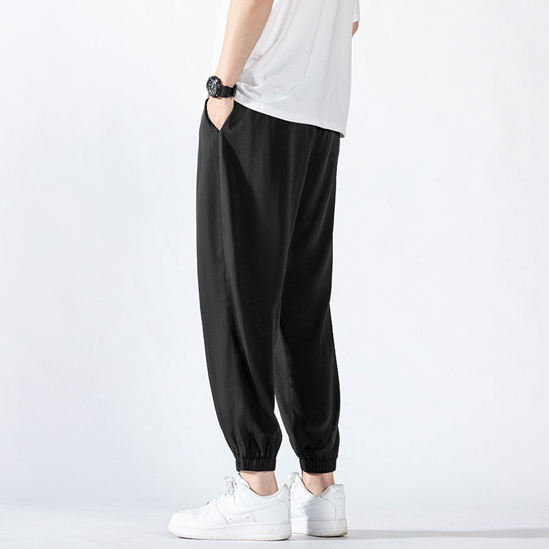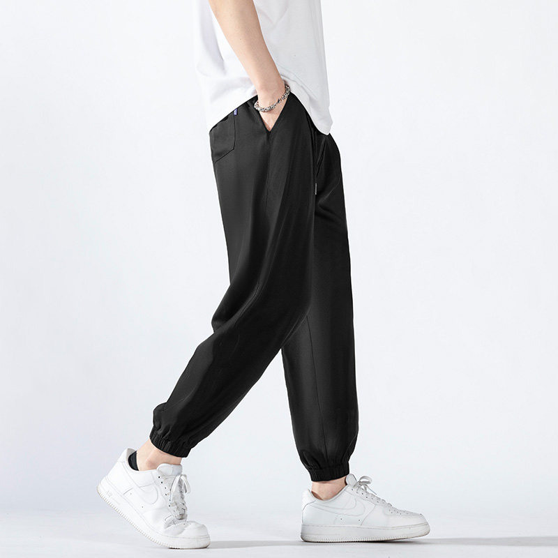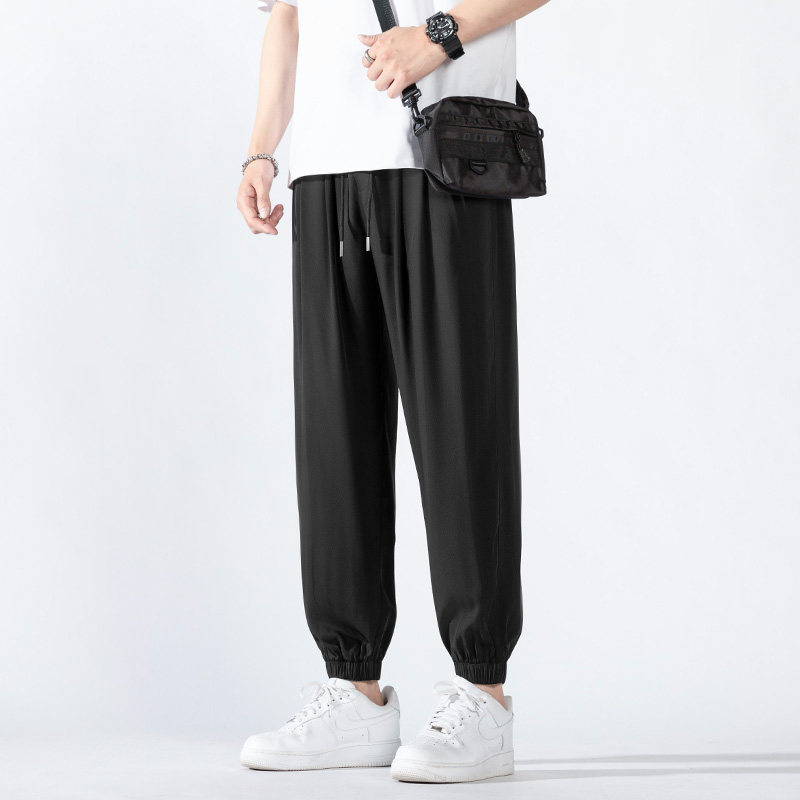 Bouquet Pants Men Summer Thin style Casual Loose Loose Sense Black 90% Elastic Ice Silk Speed Dry Trend Sport Pants