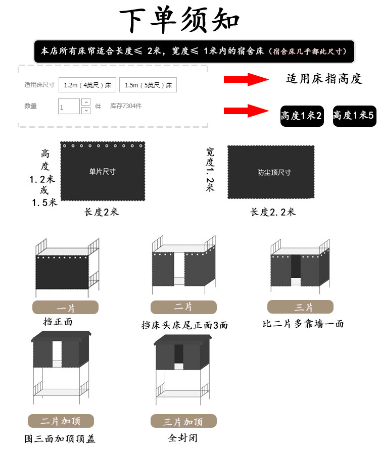 1 2 m High sheet (1 face) 1 5m High sheet (enclosed 1 side) 1 2m High two pieces (around 3 sides) 1 5m High two pieces (around 3 sides) 1 2m High three pieces (