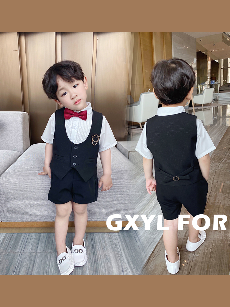 White short sleeve shirt black short sleeve shirt black shorts white shirt with black collar knots black shorts white shirt with baby bag red collar knot card its shorts white shirt holding baby bag collar knots black horse chia