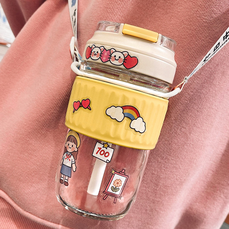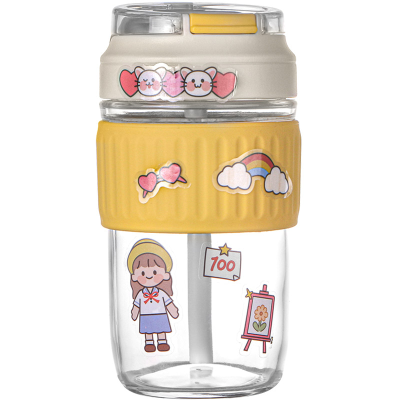 Straw cup women's summer glass cute ins wind portable simple Japanese Yan value super high summer water cup net red