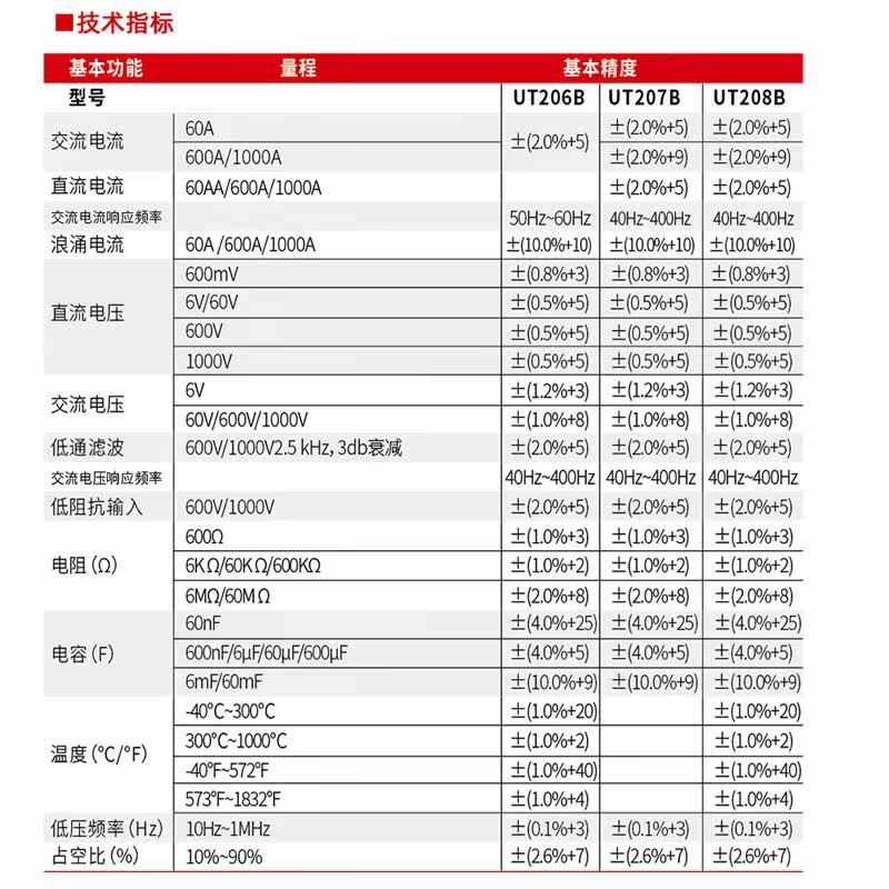 UT206B (non-contact measurement external interface) UT207B (large capacitance measurement) UT208B (torch temperature external interface)