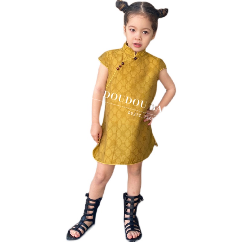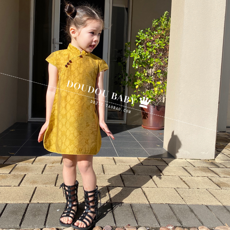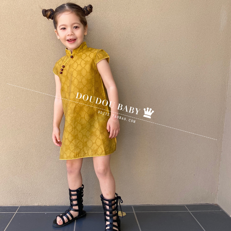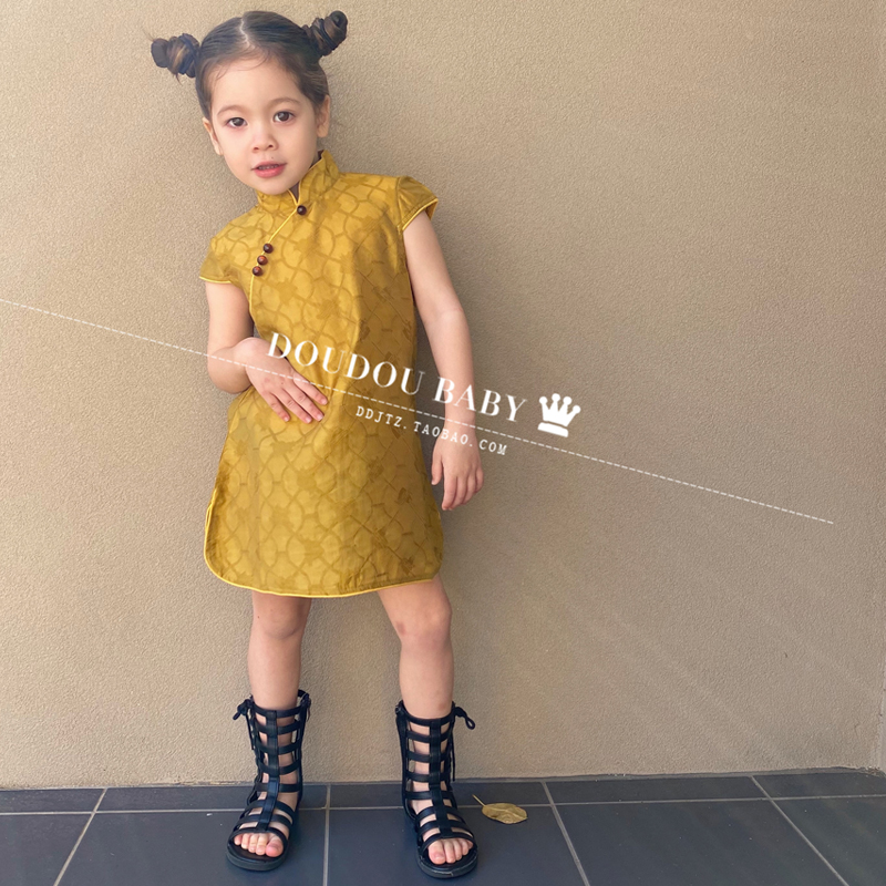 Doudou's little girl's cheongsam summer Chinese style children's cheongsam dress ancient costume baby western style one-year-old dress skirt national style