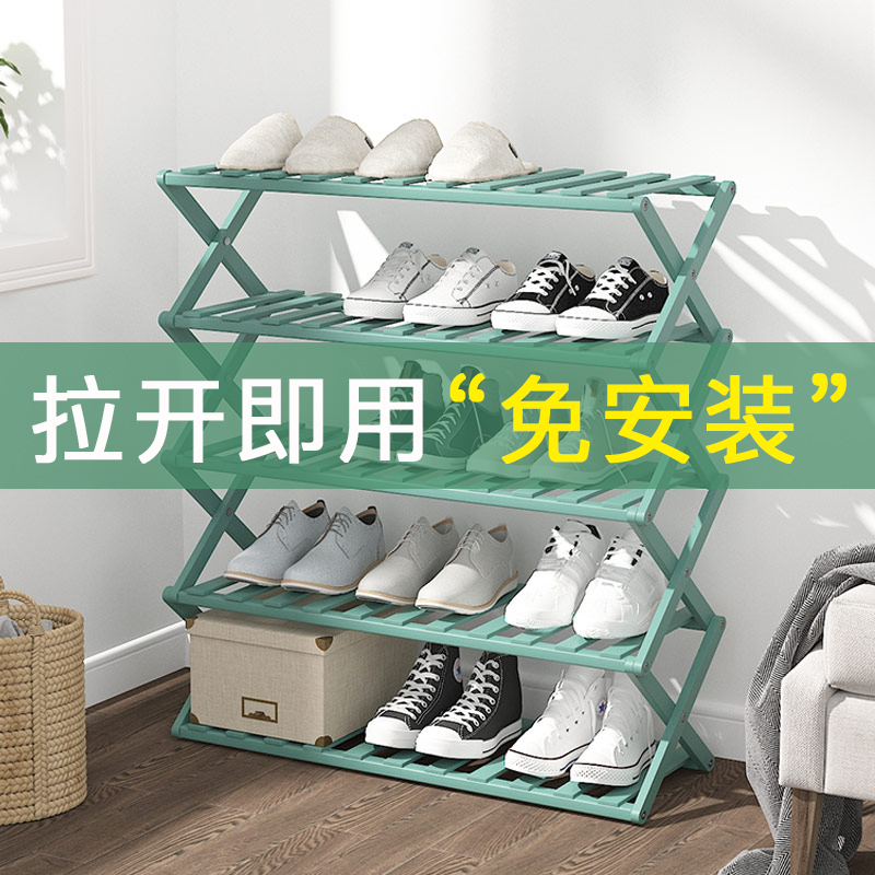 Installation-free simple door home indoor economical multi-layer folding solid wood shoe rack bamboo shoe rack dormitory explosion style