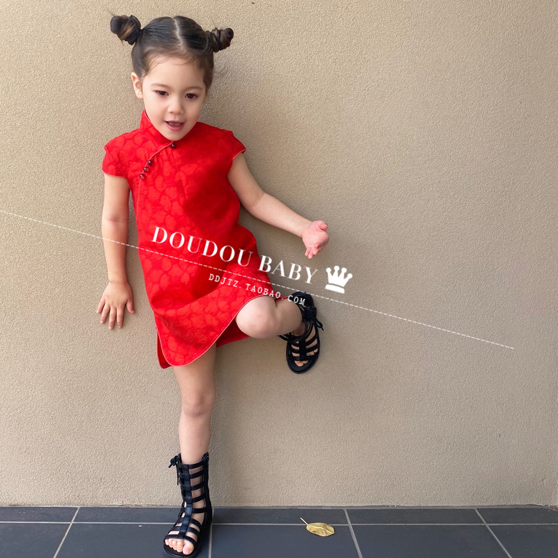 Bean Bean Home Girl Qipao 2022 Summer Dress New Baby Gown Costume Hanfu Children China Wind Cheongsam Little Girl