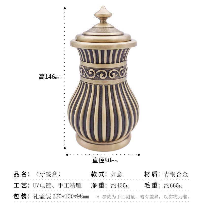 European-style luxury tooth box pure copper household automatic press classical tooth barrel living room tea table fine cans