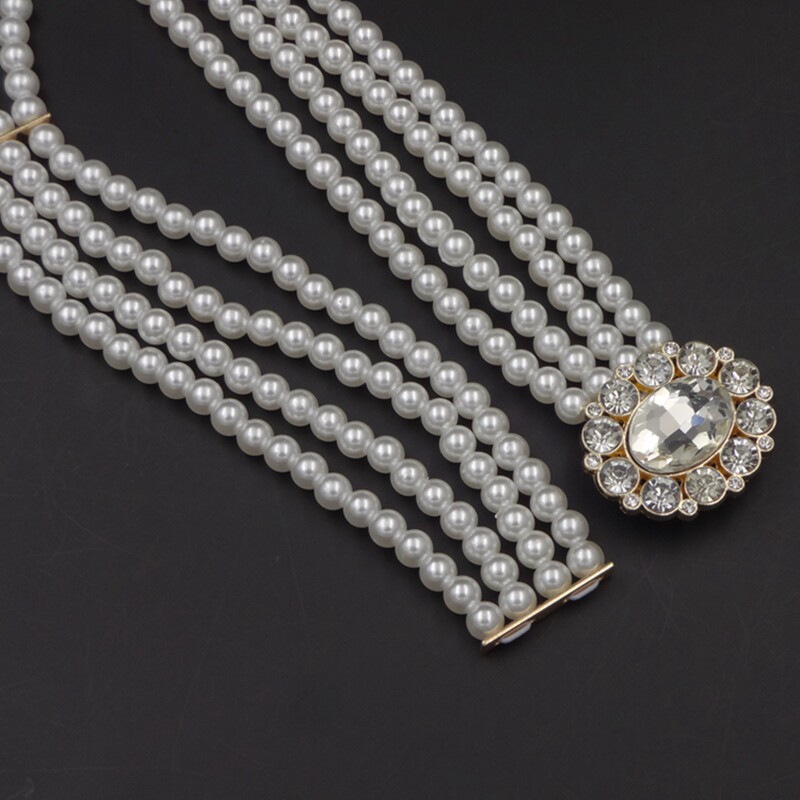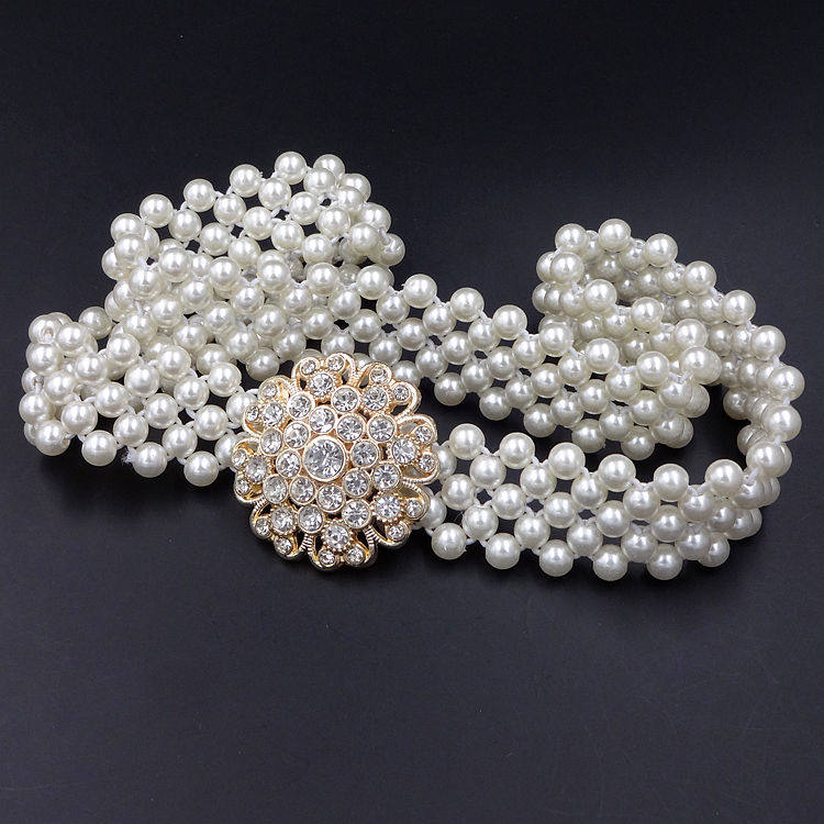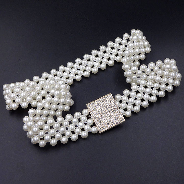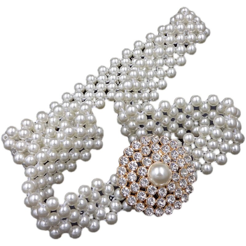 Spring Summer Fashion Pearl Fine Waist Chain Han Edition Foreign Dress Waist Seal Tightness Elastic Water Drill Belt Lady