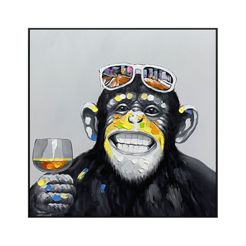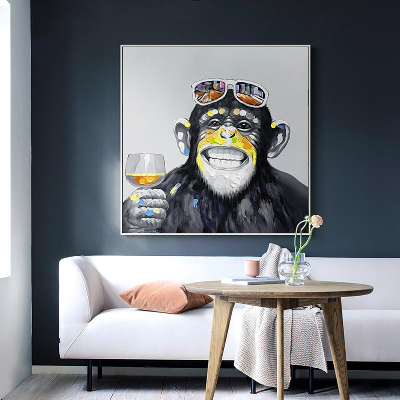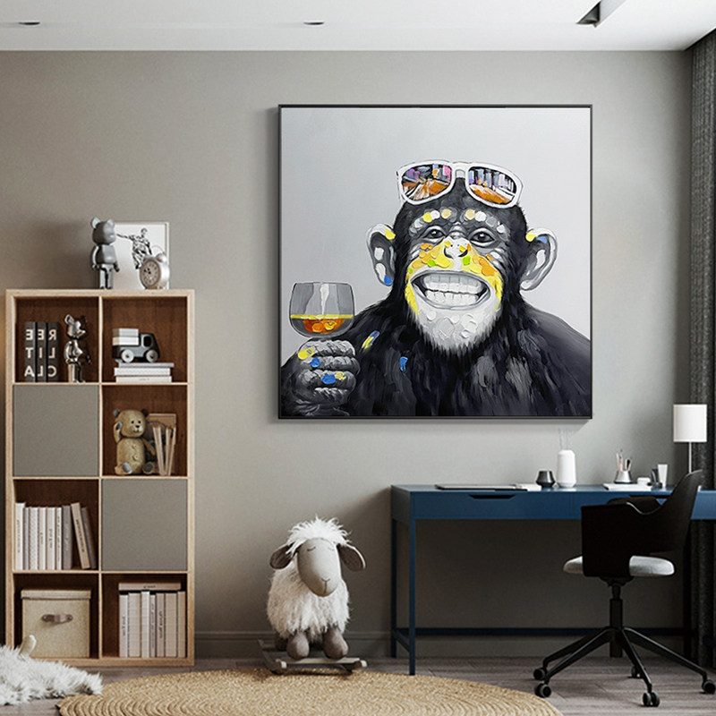 Pure hand-painted oil painting animal orangutan modern living room hanging painting dining room mural children's room decoration painting large black and white
