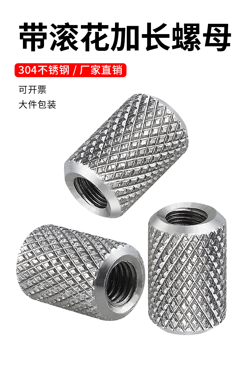 304 stainless steel elongated cylindrical knurled nut hand-tightened mesh super-connection adjustment nut M3M4M5M6M8M10
