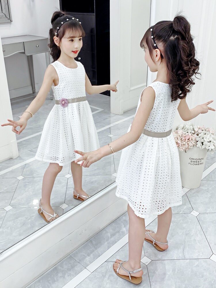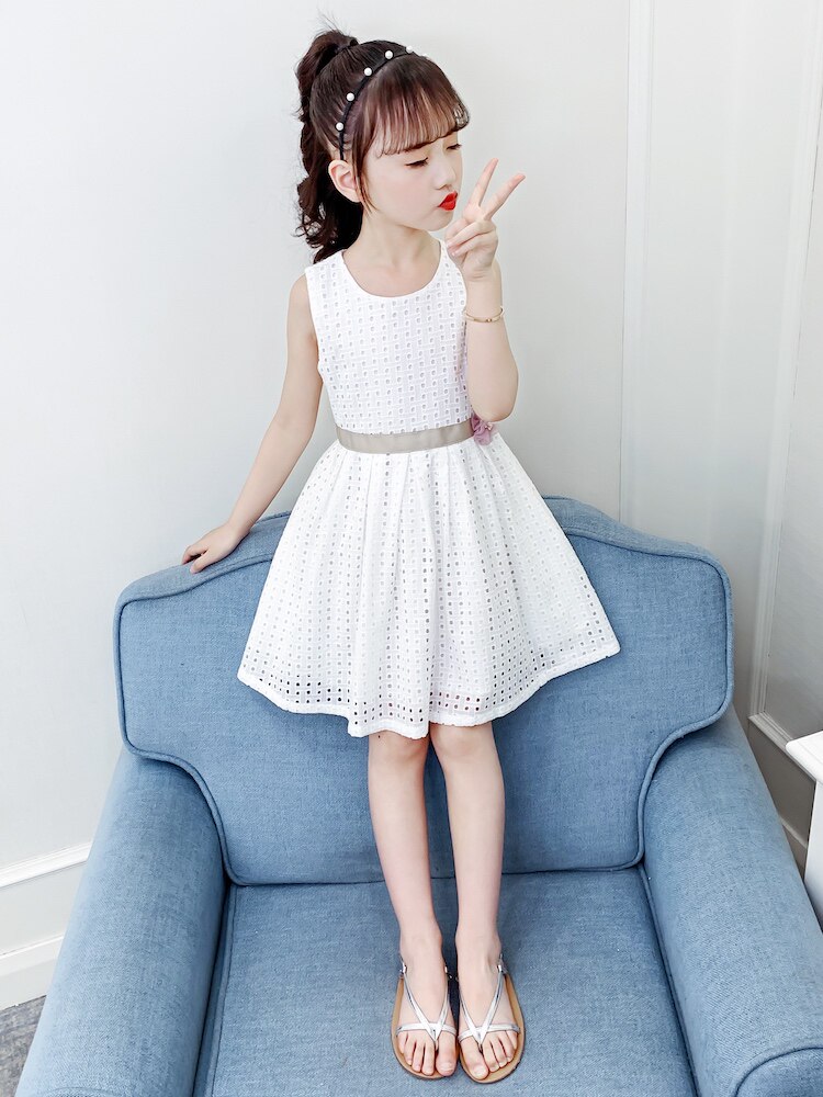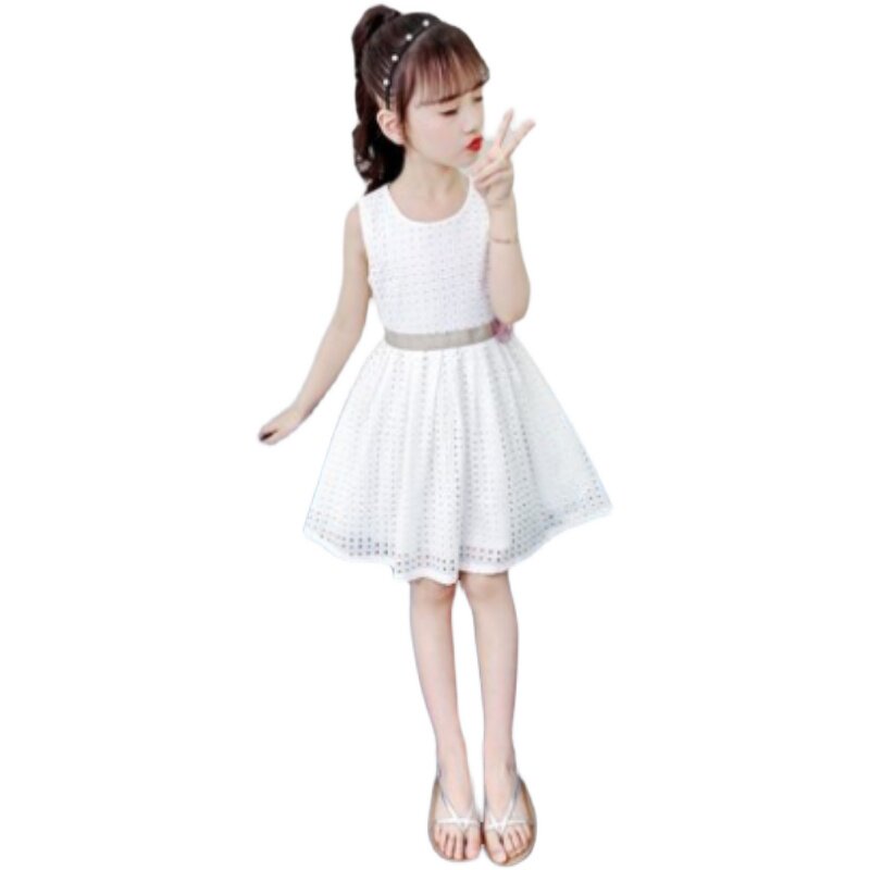 Girls' cotton dress 2022 summer new Korean version girl solid color skirt sleeveless Western style vest princess skirt