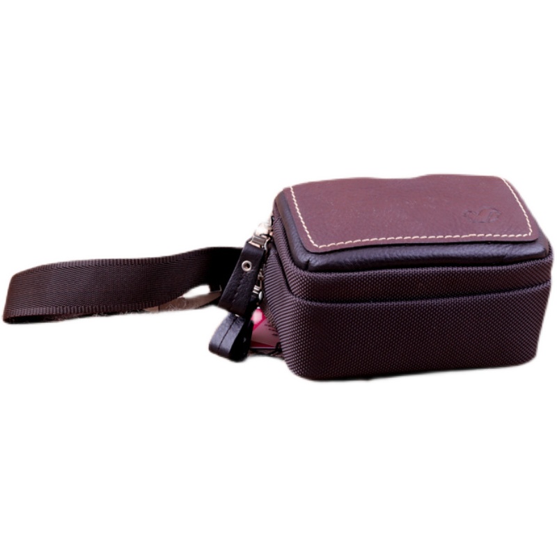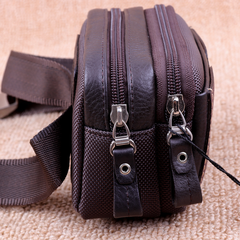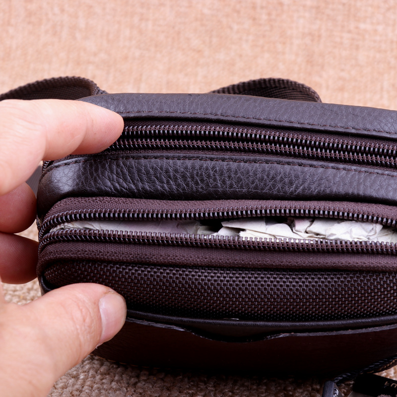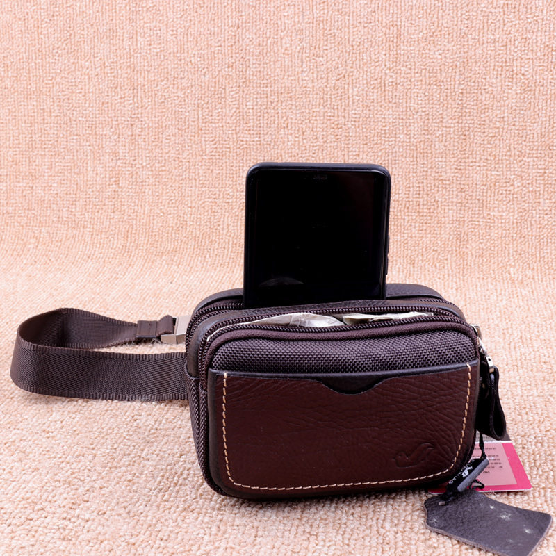 Genuine leather pocket men's multifunctional elderly mobile phone bag original single wearing leather strap double layer bag running outdoor key wallet