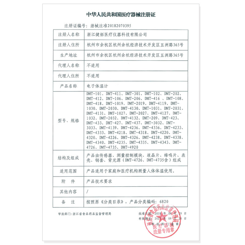 The Zhejiang Machinery is approved for 20182070395