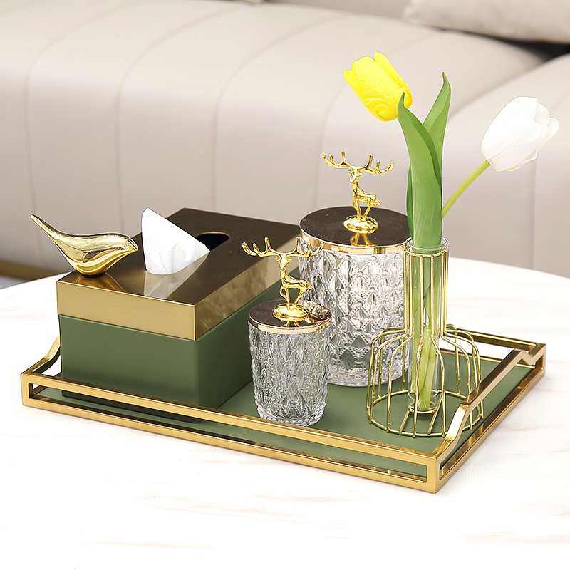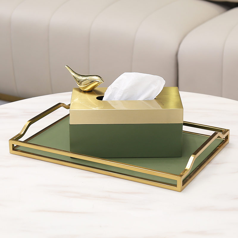 Advanced Cardamom Green Light Lavish Metal Wind Leather Toilet Paper Box Nordic Home Tea Table Tissue Box Containing Box Swing