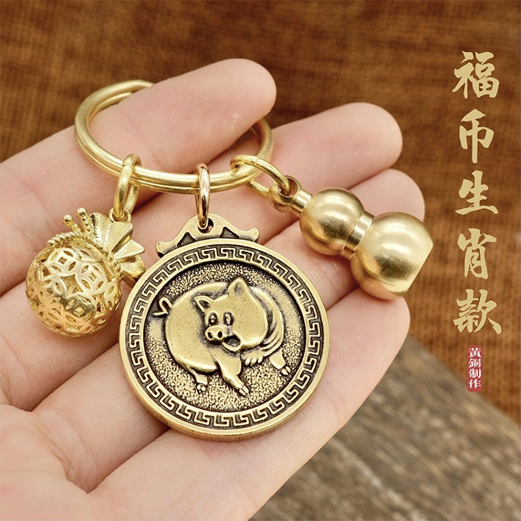 Brass Plinth Key Buckle Creative Car Key Pendant Upscale Male And Female Hanging Accessories Zodiac Pendant Lock Spoon Ring Ring Ring